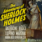 Numerous Holmes spoofs exist, including films by Buster Keaton, Abbott and Costello, Gene Wilder, as well as some interesting pairings such as George C. Scott and Joanne Woodward teaming up as the crime-solving duo. Something we would love to see (or even just hear) is the 1949 NBC Texaco Star Theatre television send-up with Milton Berle, Victor Moore and a surprise appearance by Basil Rathbone himself. My personal favorite Holmes send- up is Peeper Radio Theater's 30 Second Holmes, an outrageously amusing condensing of the cases; short, indeed, yet still mostly recognizable (they don't always make the deadline however... listen for the bell).